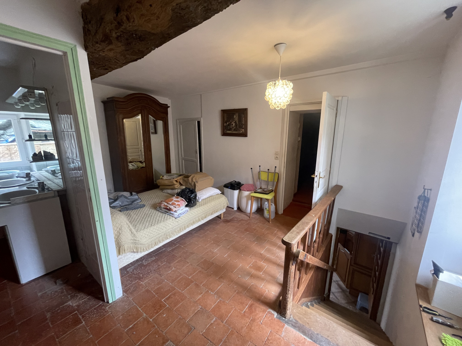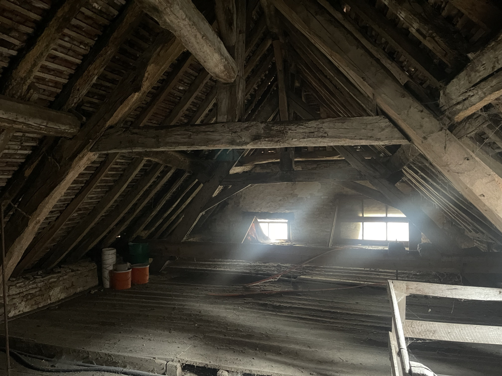 À l'étage, trois chambres, un espace bureau, une salle de bain et une autre grande pièce.