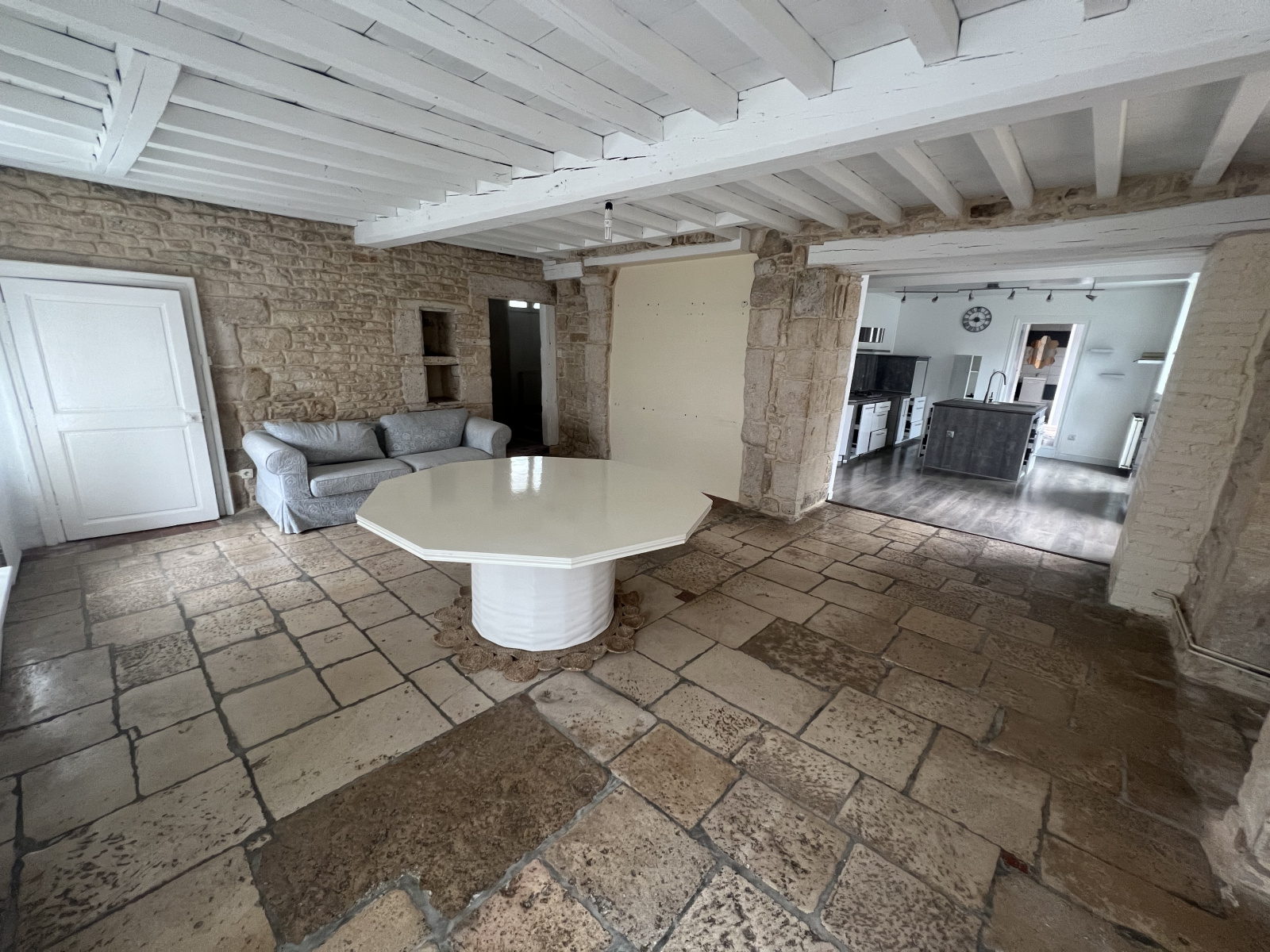 Les plus : terrain clos avec murs en pierre, tout-à-l’égout, pièces spacieuses, double vitrage, chalet indépendant, jardin, éléments de caractère (poutres, pierre, dalles anciennes).