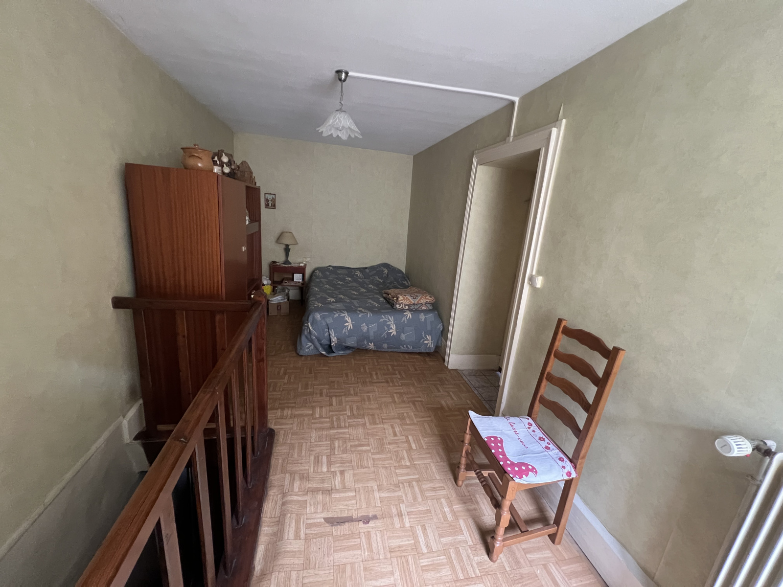 À l’étage : une cuisine, une salle à manger, un salon, une salle d’eau avec WC, deux chambres, un grenier aménageable, l’ensemble étant à rénover.