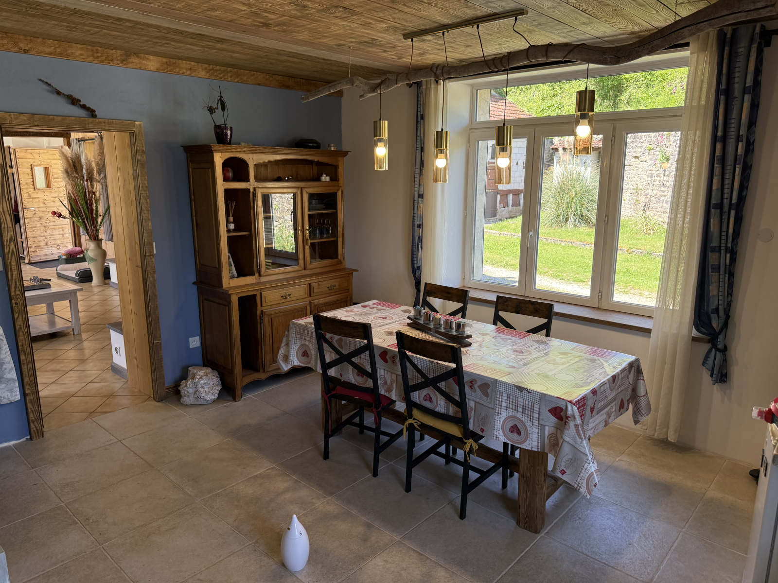 Une grande dépendance d’environ 135 m², faisant office de garage et d’atelier, complète le bien. Sa toiture est équipée de 30 panneaux solaires (puissance de 9 kW).