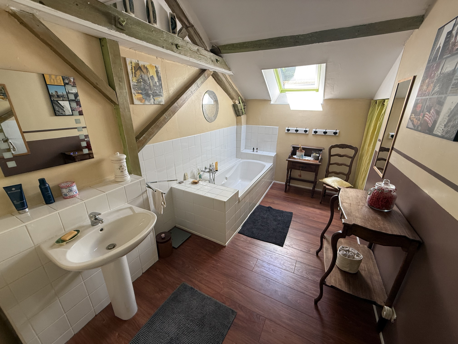 À l’étage, vous trouverez cinq grandes chambres (environ 17 m² chacune), un WC indépendant et une salle de bains.