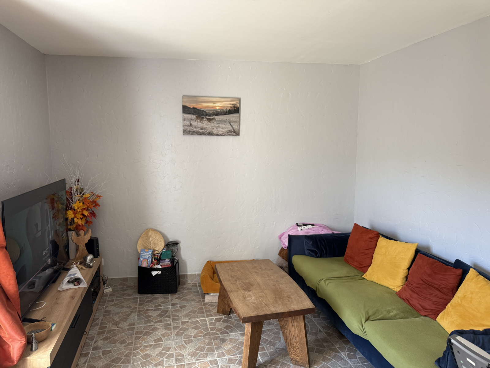 Le premier appartement se compose d’un grand salon avec cuisine ouverte, d’un espace séjour, de deux chambres, d’une salle d’eau et d’un WC. Équipé d’un poêle à granulés et de radiateurs électriques. Libre d’occupation. Potentiel locatif : 450 €.
