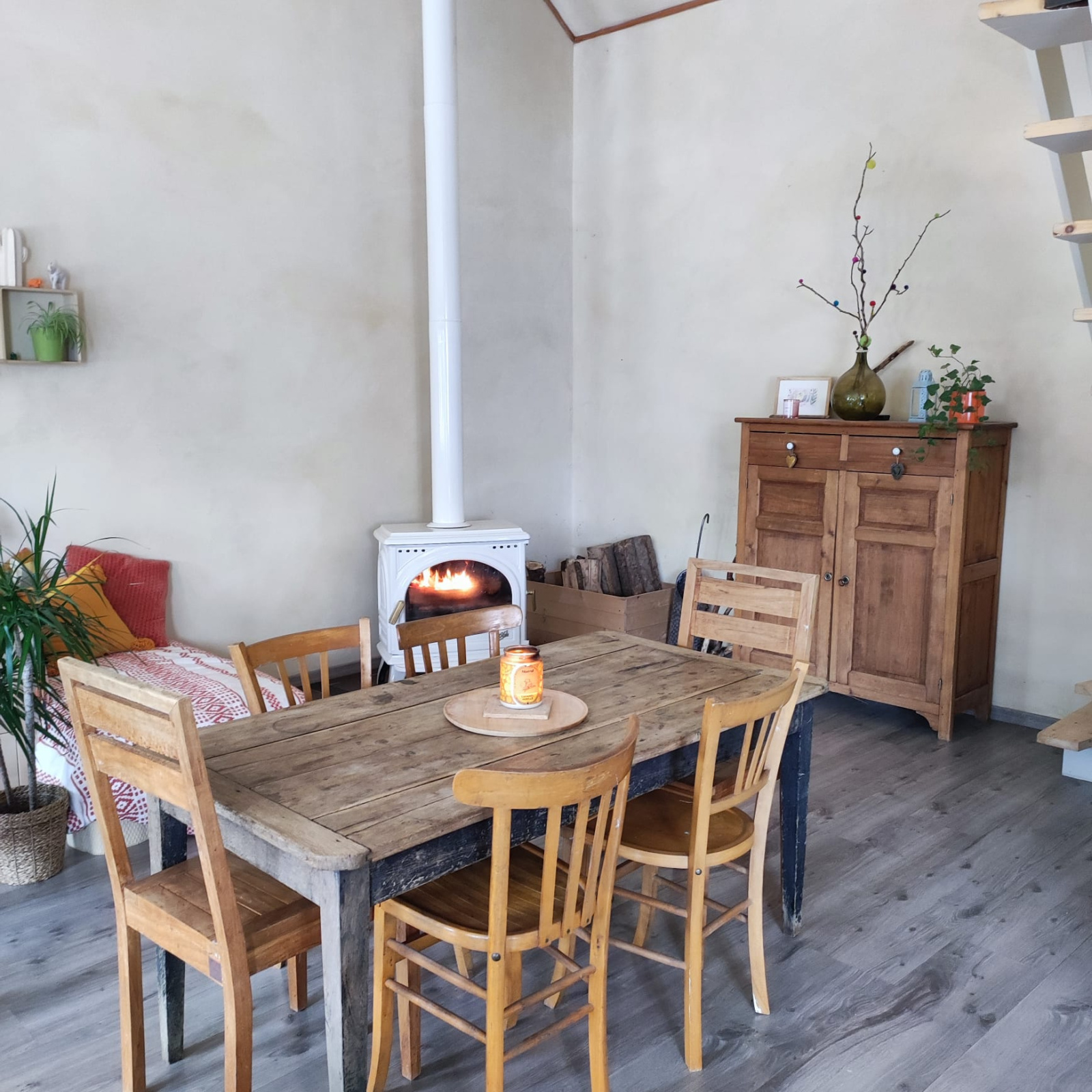 Le loft comprend : un grand salon / salle à manger, une salle d'eau avec WC et une chambre à l'étage.