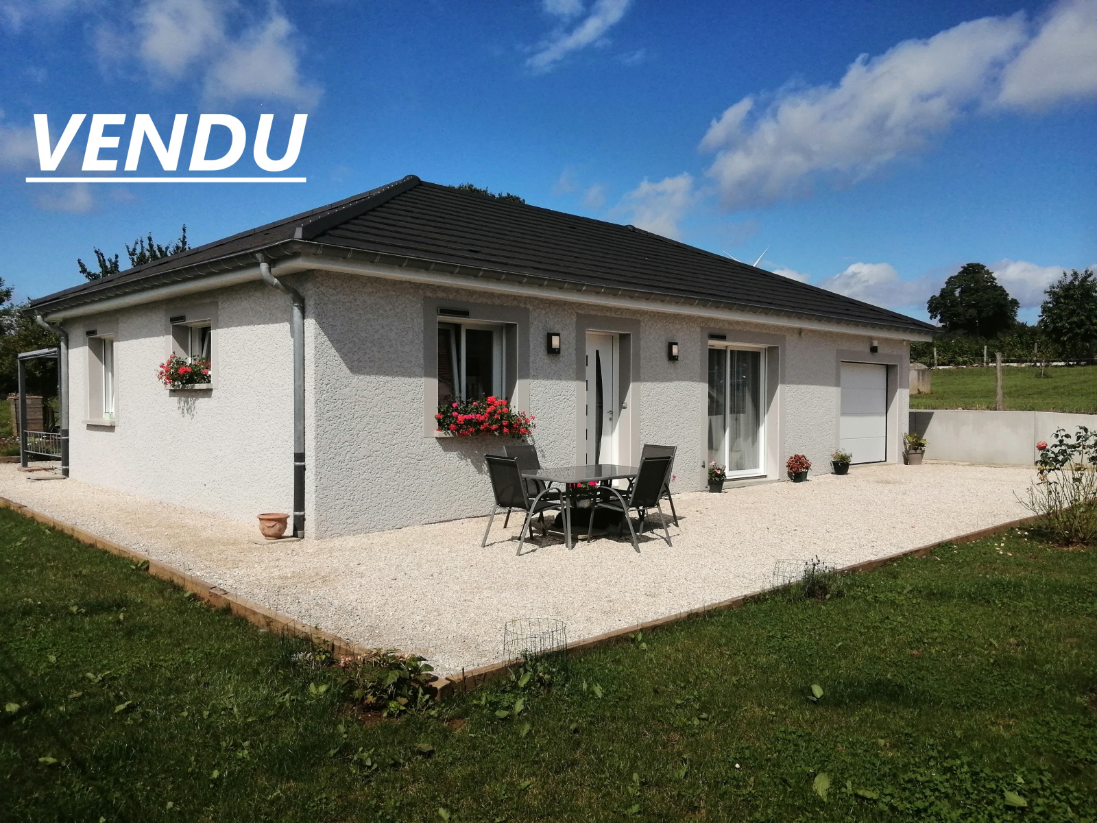 Cette maison récente de plain pied d'une surface habitable de 65,5m² est située dans un secteur calme, posée sur un terrain plat d'une surface de 5ares et 06ca.