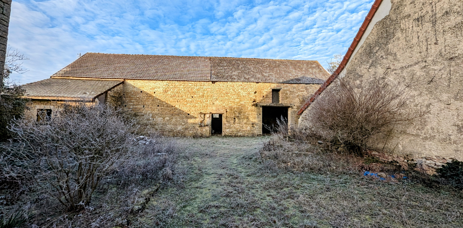 -Des dépendances :- une grange avec une petite batisse adossée, avec ouverture sur un jardin- un autre grange dont une partie est en cours d’aménagement.- Un grand auvent- un garage avec toiture neuve.